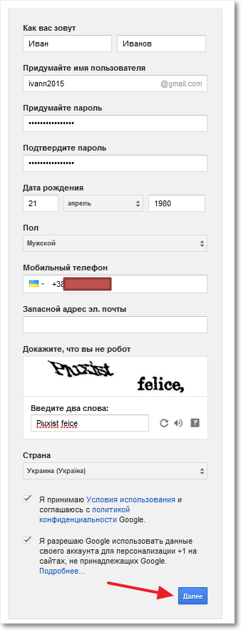 Вам потребуется заполнить регистрационную форму. Ниже пример заполнения формы: