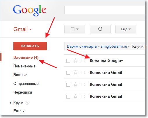очень простой. У Вас уже будет 4 входящих письма от компании Gmail. Чтобы